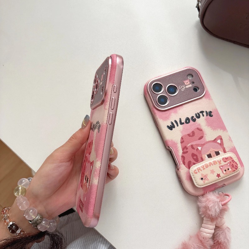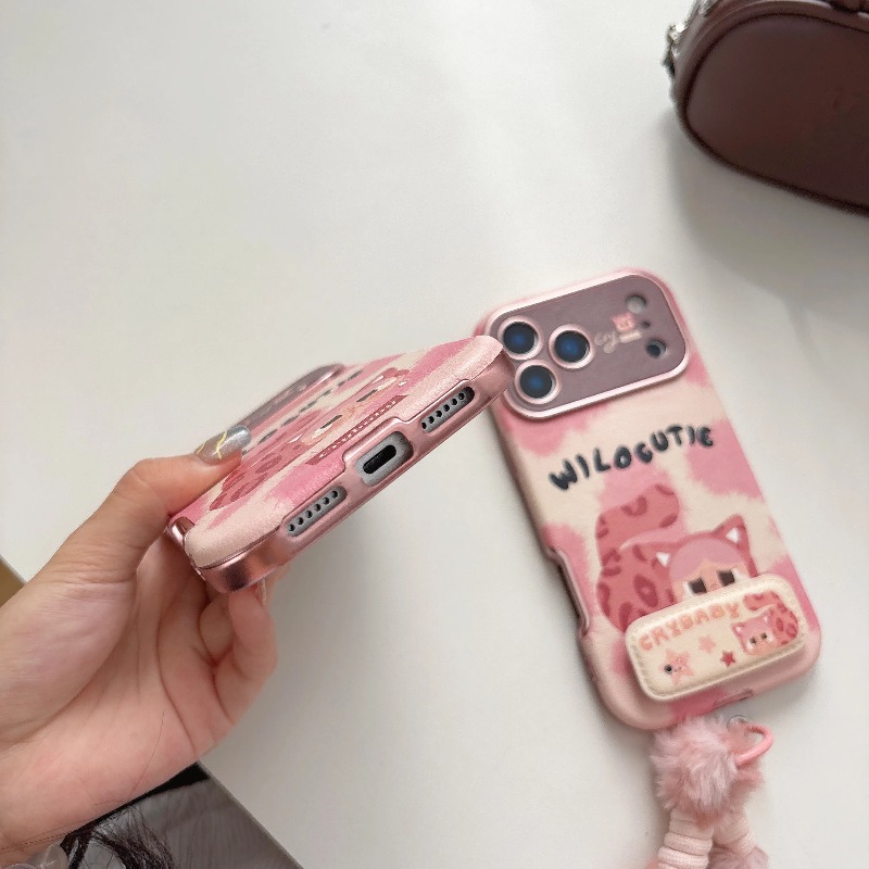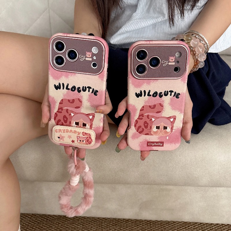 Kawaii winter charm unlocked! This pink crying cat leather phone cover with strap for iPhone features an adorable crying cat print, soft pink leopard texture, and a cute matching strap—blending sweet kawaii style with durable leather protection. The playful design adds a fun, girly touch to your iPhone, making it the purr-fect winter accessory for cat lovers!
