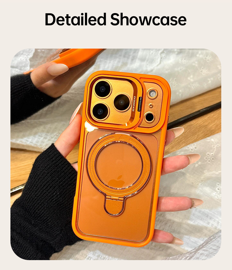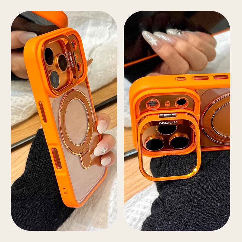 Style meets utility — one magnetic ring stand and one lens-level kickstand let you switch viewing angles instantly.