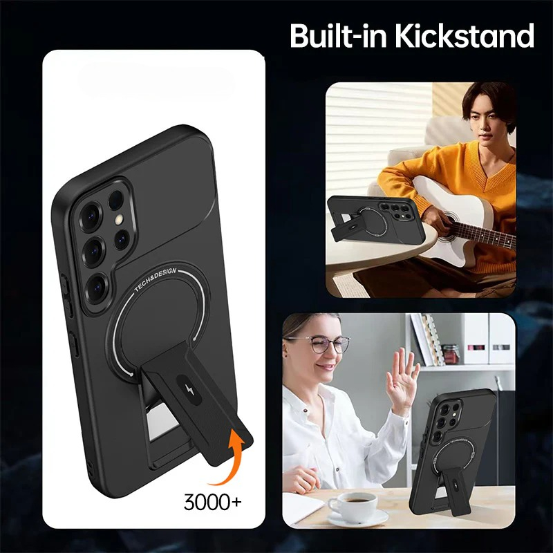 The built-in kickstand opens smoothly and locks firmly in place,